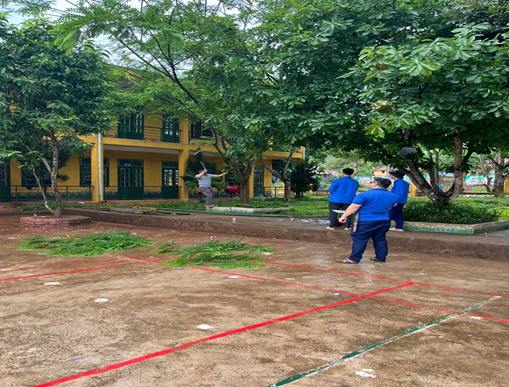 Các đồng chí đoàn viên phối hợp cùng công đoàn viên trong nhà trường
