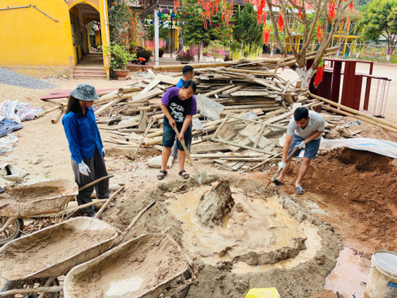 Bên cạnh hoạt động vệ sinh môi trường, Đoàn trường còn tổ chức thực hiện công trình thanh niên đầy ý nghĩa: xây dựng rãnh thoát nước trong khuôn viên trường. Đây là một công trình quan trọng nhằm cải thiện hệ thống thoát nước, giảm thiểu tình trạng ngập úng khi trời mưa, đảm bảo an toàn cho học sinh, giáo viên khi di chuyển trong khu vực trường học. Sự đoàn kết, chung tay góp sức của các đoàn viên thanh niên đã giúp công trình được hoàn thành nhanh chóng, thể hiện tinh thần trách nhiệm và ý thức cộng đồng cao của tuổi trẻ.