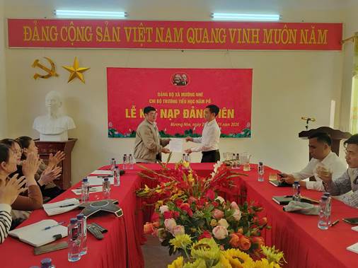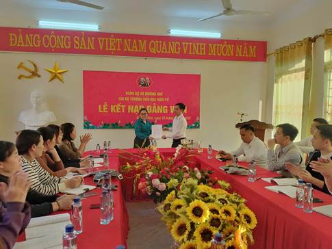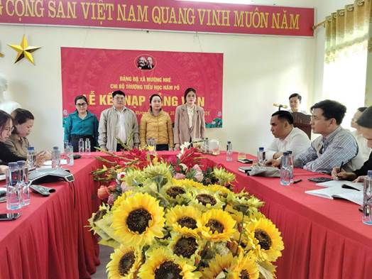 Trong không khí trang nghiêm, phấn khởi, Chi bộ Trường PTDTBT Tiểu học Nậm Pố đã long trọng tổ chức Lễ kết nạp Đảng viên mới cho các quần chúng ưu tú: Quàng Thị Ngân, Hà Thị Quyên, V Thị Báu và Chu Văn Thái.