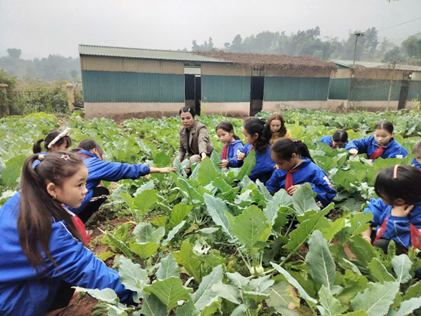 Hình ảnh giáo viên cùng học sinh chăm sóc rau xanh